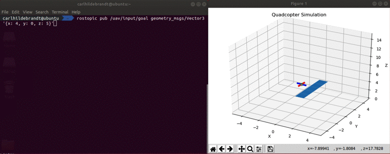 $ ros2 topic pub /uav/input/goal geometry_msgs/Vector3 '{x: -4, y: 0, z: 3}'