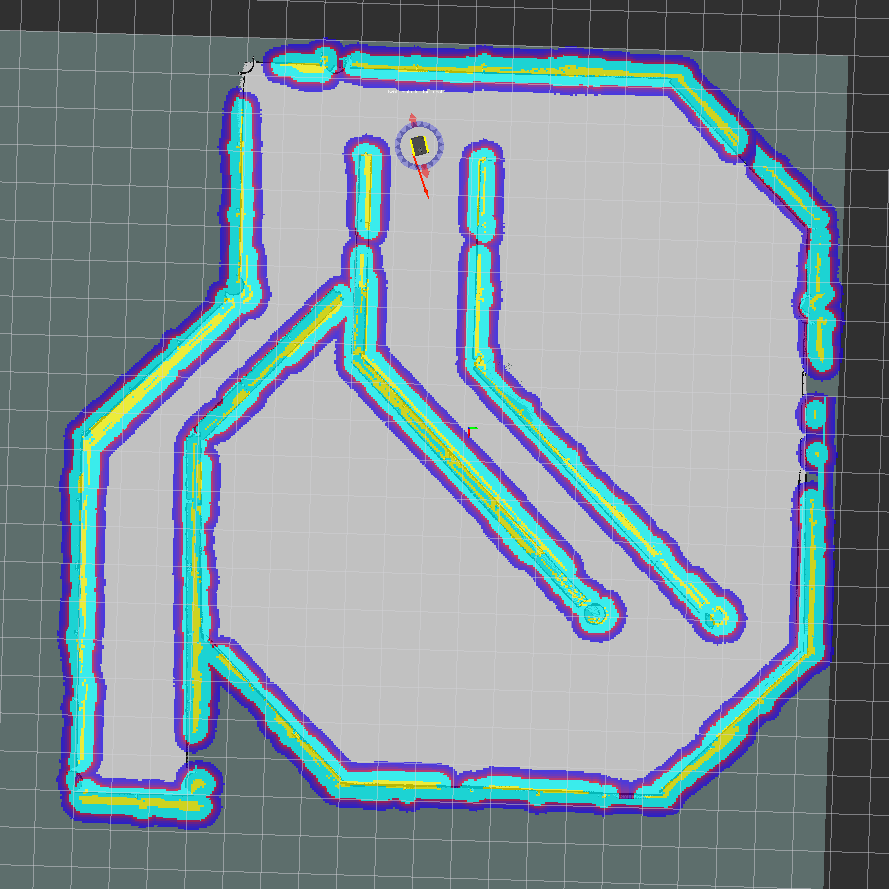 Let’s check that we set up everything correctly by launching the system and not declaring the map_file variable instance. It should default to map_medium0.yaml and we should see what we saw in the self-checkpoint. Launch the simulator using: